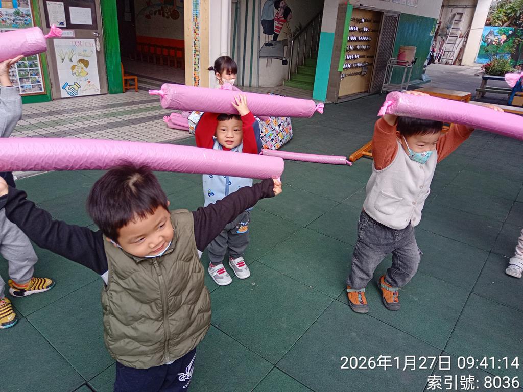 相簿名稱: 寶貝班大肌肉活動~空氣棒遊戲115.1.26~30